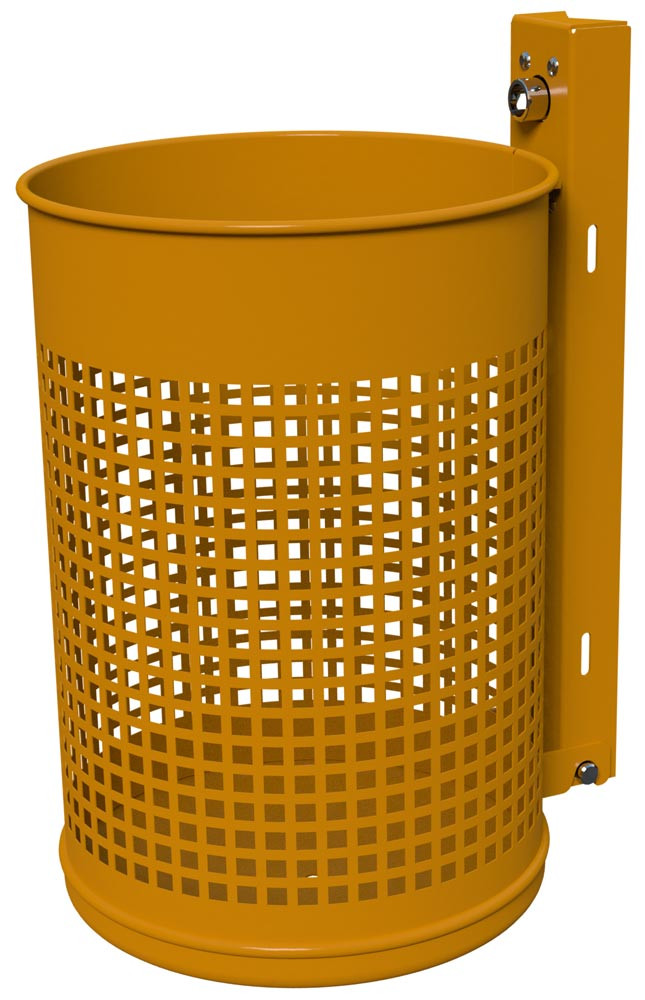 ∙ Gefertigt aus Stahlblech ∙ Gelochter Korpus ∙ Geeignet zur Wand- und Pfostenmontage ∙ Volumen ca. 20 oder 50 l ∙ Behälter-Ø 265 oder 370 mm, Höhe 410 oder 520 mm ∙ Gewicht inkl. Befestigungsschiene ca. 4,0 oder 5,5 kg ∙ Erhältlich in feuerverzinkt oder feuerverzinkt und zusätzlich pulverbeschichtet ∙ Lieferumfang: Abfallbehälter, Befestigungsschiene und Schlüssel (Befestigungsmaterial siehe Zubehör)