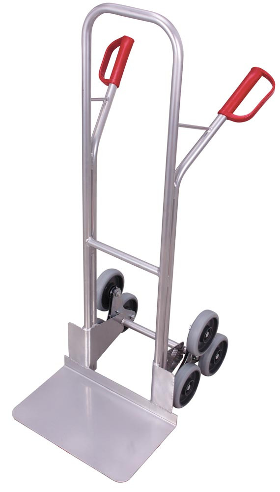Alu-Treppenkarre, Schaufel-BxT 480x300 mm, BxTxH 570x676x1310 mm, Traglast 200 kg, 2 dreiarmige Radsterne Vollgummibereifung