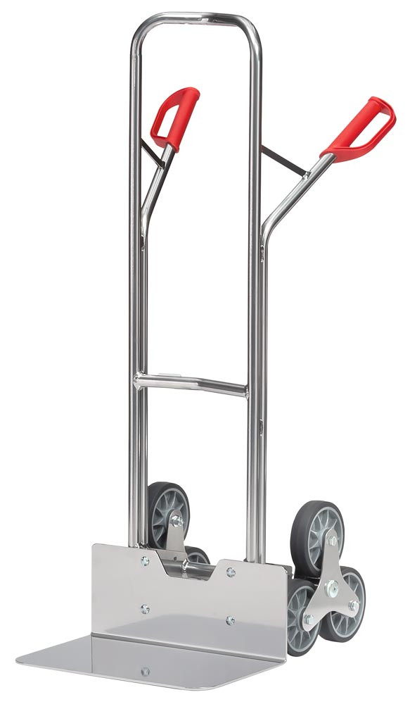 Alu-Treppenkarre, Schaufel-BxT 480x300 mm, HxB 1300x590 mm, Traglast 200 kg, 2 dreiarmige Radsterne Vollgummibereifung