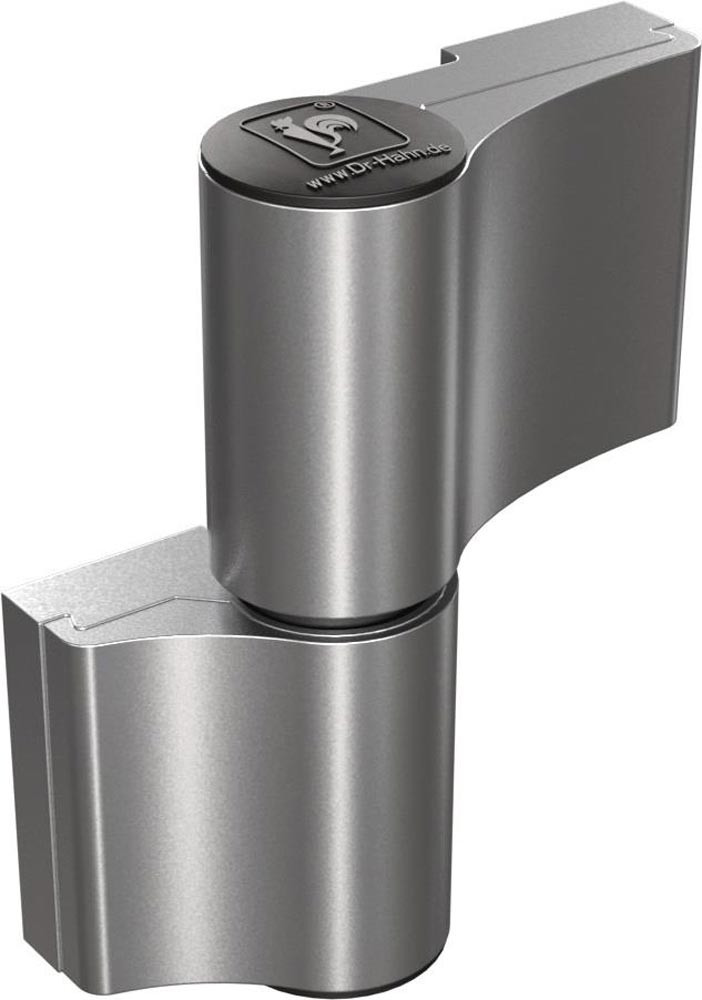 Aufschraubband für repräsentative Objekt- und Funktionstüren · DIN links / rechts verwendbar · dreidimensional verstellbar · Bohrabstand 65 mm, Halbmaße: rahmenseitig 20,5 mm, flügelseitig 44,5 mm · gefertigt aus stranggepresstem Aluminium · Lagerstelle wartungsfrei · Ankerschraube 58 mm