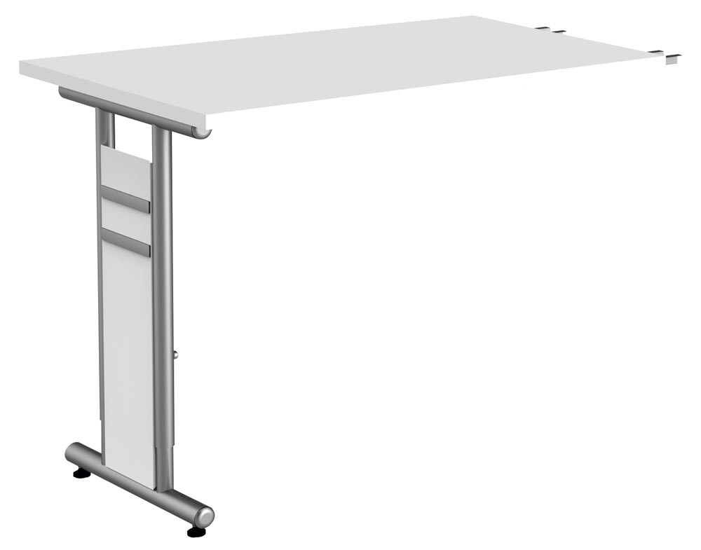 Anbau-Schreibtisch, BxTxH 1000x600x680-820 mm, C-Fuß-Gestell alusilber, Platte weiß, inkl. Kabelkanal E6019668