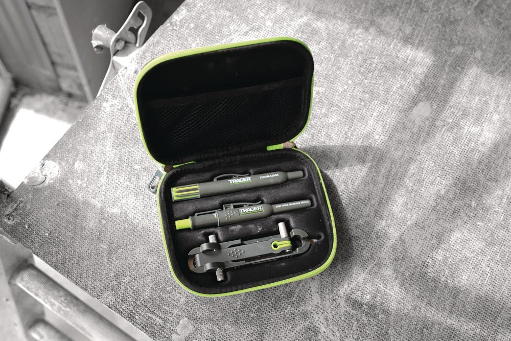 Lieferumfang: 1 Munltifunktionswerkzeug, 1 Tiefloch-Bleistift mit Scheide und Anspitzer, 1 Ersatzminenmagazin mit 6 Graphit-Minen, Lieferung in hochwertiger Tragetasche