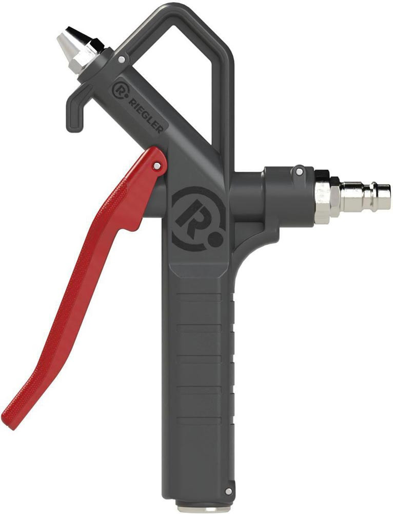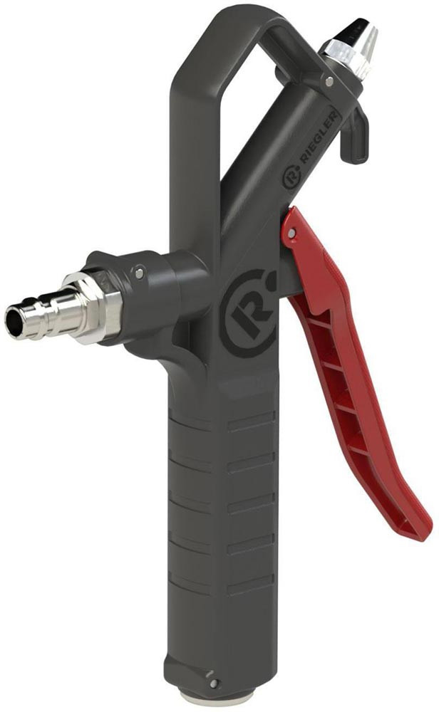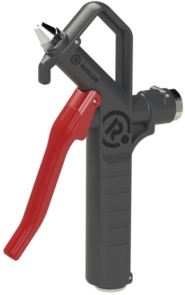 Dosierbare Blaspistole · Kunststoff · Standarddüse · oben anschließbar · PN max. 12 bar · Nippel NW 7,2. Zum Ausblasen und Reinigen von Maschinen · Motoren · Lagern · Gleitflächen · Bohrungen aller Art · Hohlkörpern · Formen usw.