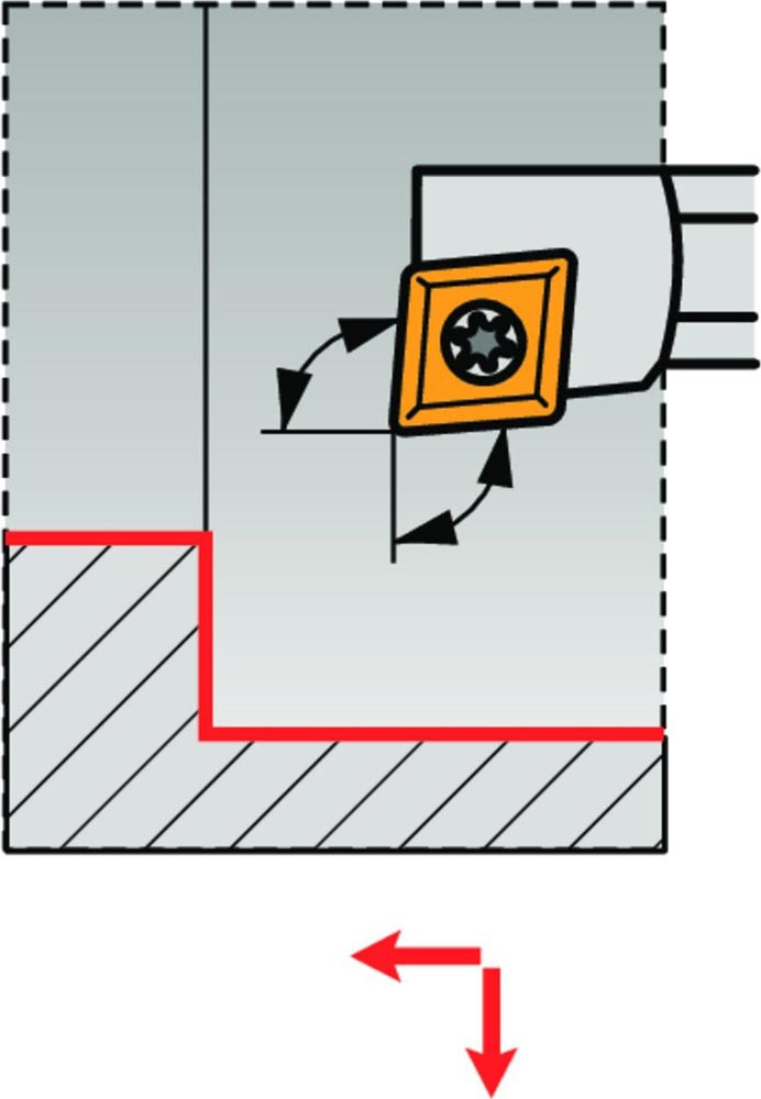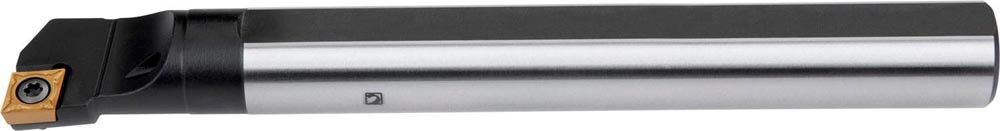 Dreh-Bohrstange mit Schraubklemmung zum spannen von 80° Rhombus positive Wendeschneidplatten mit einem Innenkreisdurchmesser von 9.525mm · 3.97mm Dick (ISO Bezeichnung CC.. 09T3.. ) · rechte Ausführung zum 95° Stirn-und Längsdrehen mit abgesetzem Schaft · Stahl mit Kühlkanalbohrung · 16mm Durchmesser x 150mm Länge für Innenkegeldrehen und Längsdrehen mit und ohne Schulter