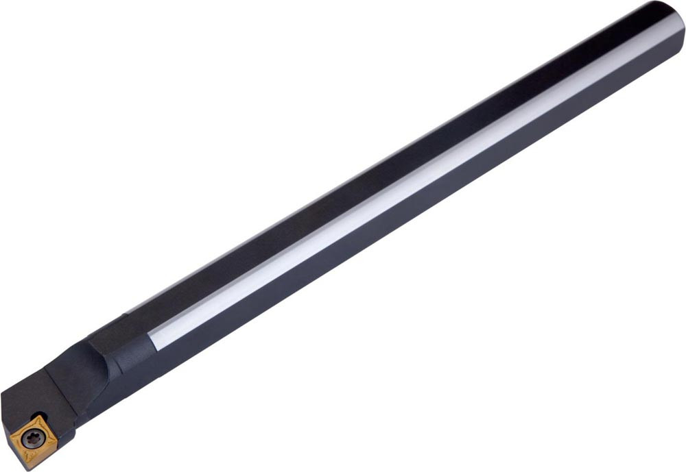 Dreh-Bohrstange mit Schraubklemmung zum spannen von 80° Rhombus positive Wendeschneidplatten mit einem Innenkreisdurchmesser von 12.7mm · 4.76mm Dick (ISO Bezeichnung CC.. 1204.. ) · rechte Ausführung zum 95° Stirn-und Längsdrehen mit abgesetzem Schaft · Stahl ohne Kühlkanalbohrung · 32mm Durchmesser x 350mm Länge für Innenkegeldrehen und Längsdrehen mit und ohne Schulter