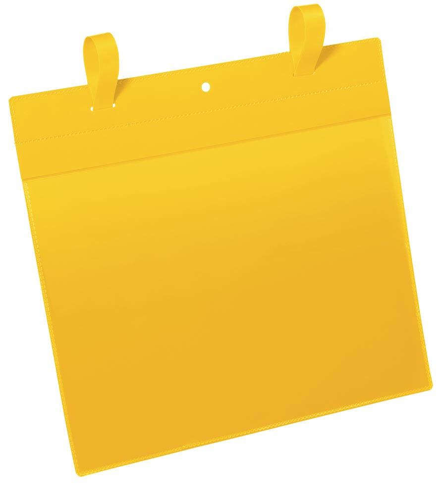 · Mit pfeilförmigen Laschen zur Befestigung an Lager- und Transportboxen · Starker Halt an beweglichen Transportbehältern wie Gitterboxen · Farbige Rückenfolie und transparente Vorderfolie aus strapzierfähigem Polypropylen · Scannertauglich und dokumentenecht · Geeignet für den Außeneinsatz durch Staub- und Regenschutzklappe · Schneller Austausch der Einsteckschilder · Dokumentenwechsel ohne Entfernen der Tasche · VE 50 Stück