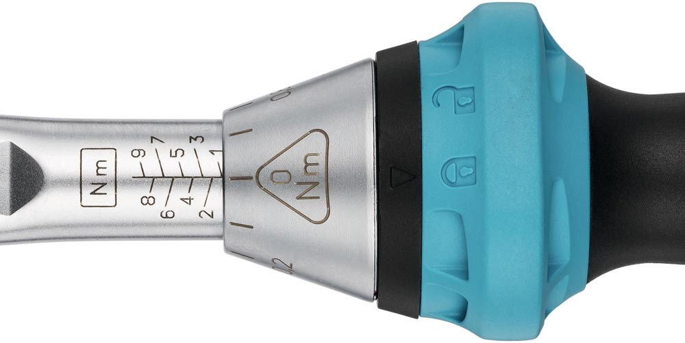 mit Umschaltknarre · für Rechtsgang · automatische, deutlich hör- und spürbare Kurzwegeauslösung beim Erreichen des vorgewählten Drehmomentes · Auslösegenauigkeit ± 4 % vom eingestellten Skalenwert (in Betätigungsrichtung) · Befestigungsmöglichkeit für Seilschlaufe durch Öffnungen am Verriegelungs-Drehkranz · dauerhafte Lesbarkeit durch Laserbeschriftung der Skalenhülse · Abrollschutz · Einstellhilfe durch Rastpunkte gewährleistet sicheres und schnelles Einstellen des gewünschten Drehmomentwertes durch Drehen des Griffes · 2-Komponentengriff · Schloss-Symbole signalisieren den jeweiligen Verriegelungszustand