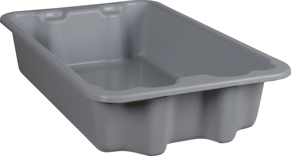 aus Polypropylen (PP) · können ineinander geschachtelt oder nach einer 180° Drehung mühelos aufeinander gestapelt werden · leicht zu handhaben · lebensmittelecht · temperaturbeständig von -20 °C bis +80 °C · bedingt beständig gegen Öle, Benzin und Säuren (bitte anfragen)