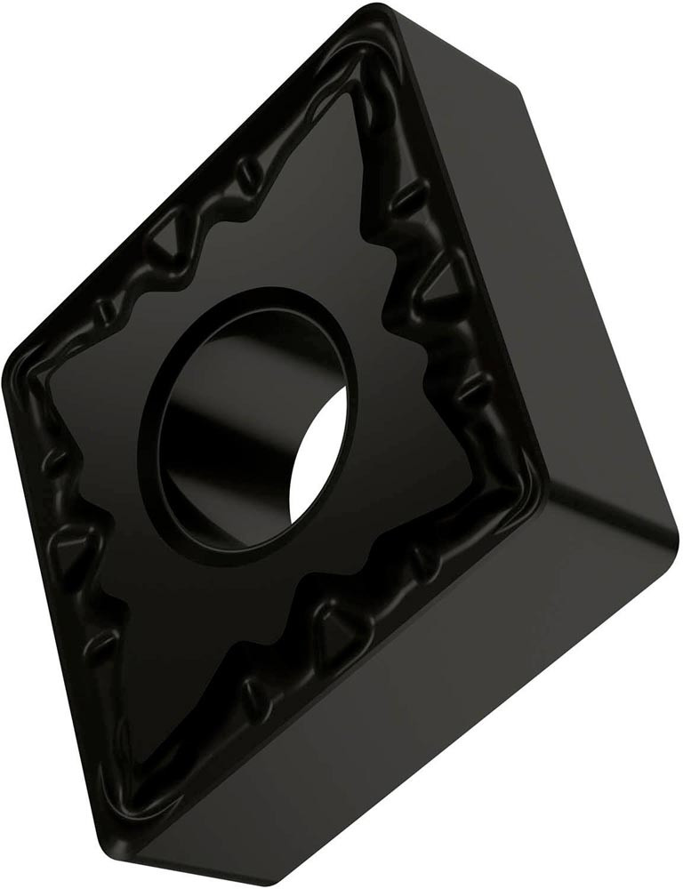 Doppelseitige negative Drehwendeschneidplatte · 80° Rhombisch mit Innenkreisdurchmesser von 12.7mm · 4.76mm Dick · 0.4mm Radius · Indexgenauigkeit nach ISO-Toleranzklasse-M · Spanbrecher FM mit verrundeter Schneidkante · im Substrat T9325 · MT-CVD beschichtet functionally graded WC-Co carbide im ISO-Bereich P15 -P35 · zum schlichten bis medium bearbeiten von Stählen