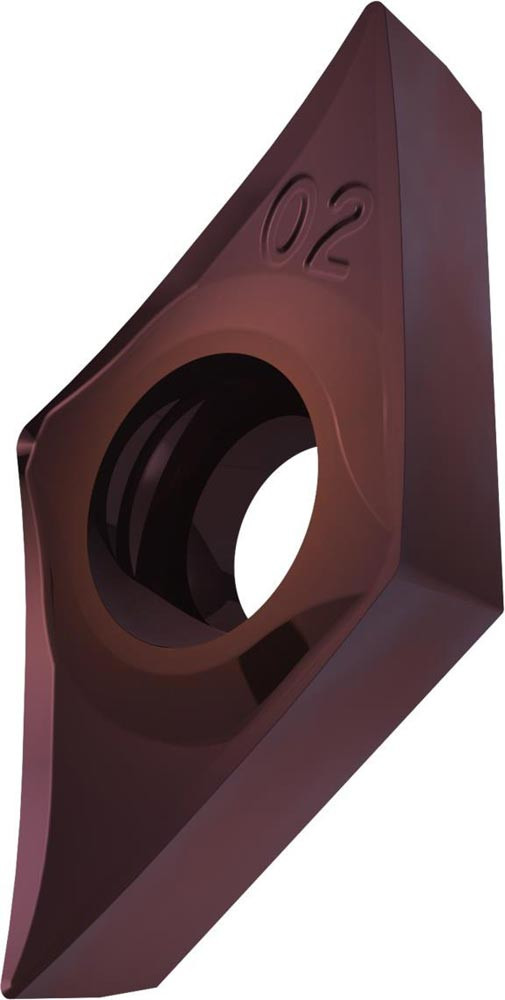 Einseitige positive Drehwendeschneidplatte · 55° Rhombisch mit 7° Freiwinkel · Innenkreisdurchmesser von 6.35mm · 2.38mm Dick · 0.4mm Radius · Indexgenauigkeit nach ISO-Toleranzklasse-G · Spanbrecher SF3 mit verrundeter Schneidkante · im Substrat T8415.