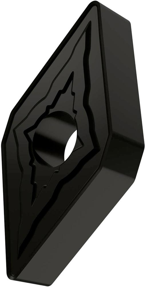 Doppelseitige negative Drehwendeschneidplatte · 55° Rhombisch mit Innenkreisdurchmesser von 12.7mm · 6.35mm Dick · 0.4mm Radius · Indexgenauigkeit nach ISO-Toleranzklasse-M · Spanbrecher NMR mit verrundeter Schneidkante · im Substrat T7325 · MT-CVD beschichtet functionally graded WC-Co carbide in den ISO-Bereichen M10 -M25 und S10 -S25 · zum schlichten bis schruppen bearbeiten von nichtrostenden Stählen und Superlegierungen
