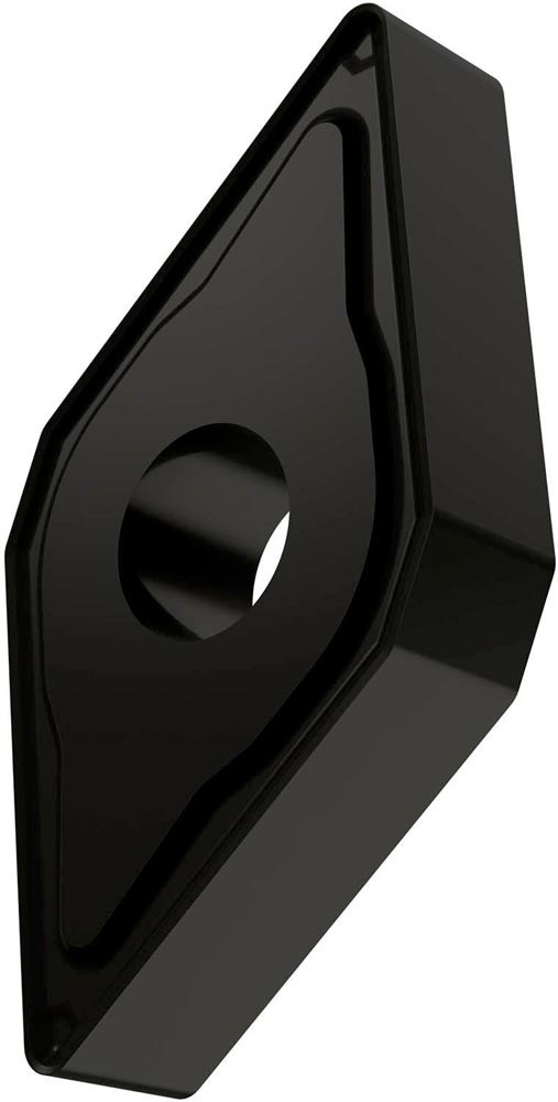 Doppelseitige negative Drehwendeschneidplatte · 55° Rhombisch mit Innenkreisdurchmesser von 12.7mm · 6.35mm Dick · 0.8mm Radius · Indexgenauigkeit nach ISO-Toleranzklasse-M · Spanbrecher NM mit verrundeter Schneidkante · im Substrat T7335 · MT-CVD beschichtet functionally graded WC-Co carbide in den ISO-Bereichen M20 -M40 und S15 -S25 · zum schlichten bis schruppen bearbeiten von nichtrostenden Stählen und Superlegierungen