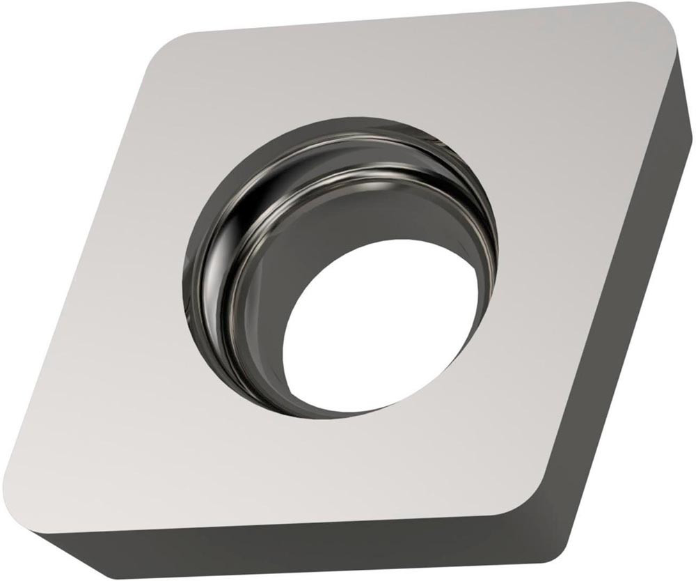 Einseitige positive Drehwendeschneidplatte · 75° Rhombisch mit 7° Freiwinkel · Innenkreisdurchmesser von 7.94mm · 3.18mm Dick · 0.4mm Radius und Indexgenauigkeit nach ISO-Toleranzklasse-M · im Substrat H07 · unbeschichtet WC-Co Substrat im ISO-Bereich K10 -K25 · zum schlichten bis medium bearbeiten von Gusseisen