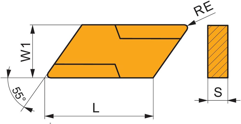 · Formcode Wendeschneidplatte: K - Parallelogramm 55° eingeschlossener Winkel