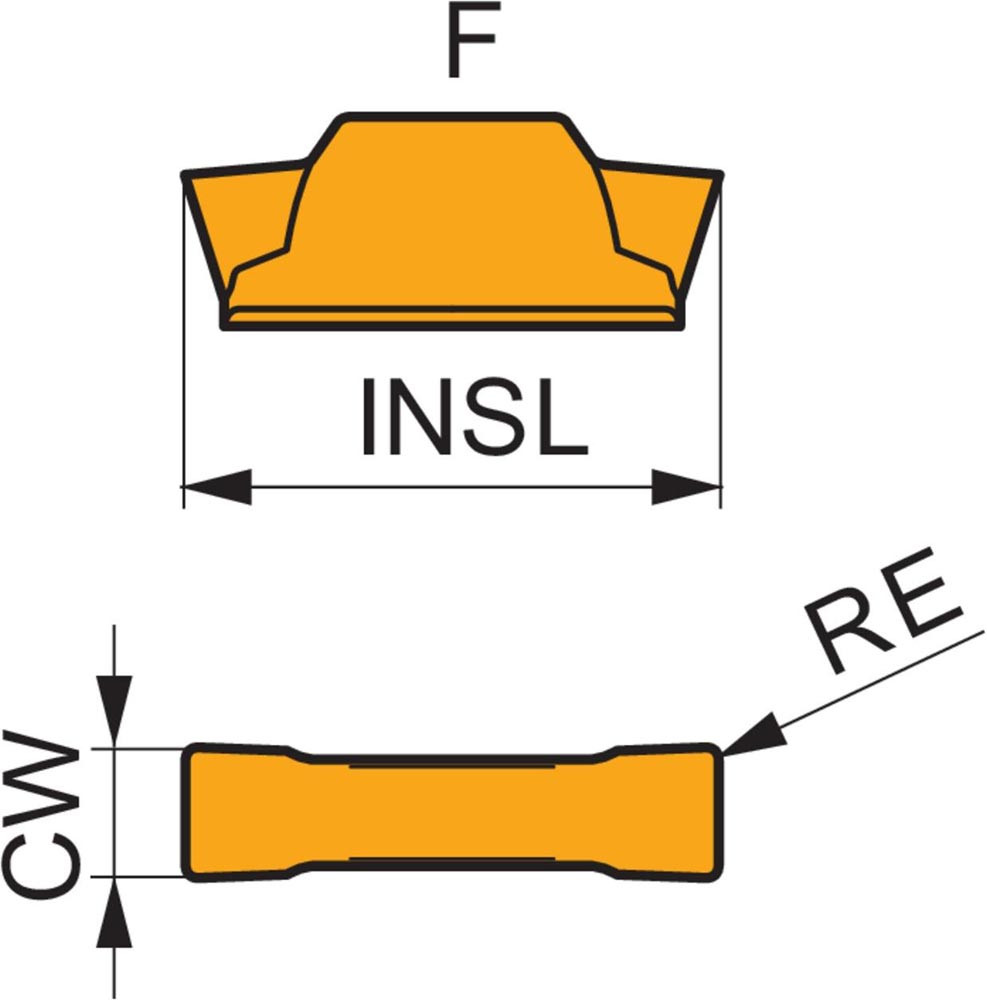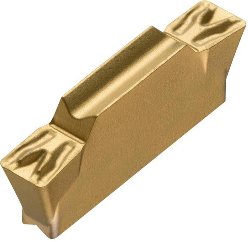 Doppelseitige Ein-und Abstech Wendeschneidplatte · 16.4mm lang mit einer 4mm Schnittbreite und einem 0.8mm Eckenradius · eine Genauigkeit nach Toleranzklasse M und einem Spanbrecher F · Substrat T9325 MT-CVD beschichtetes Funktionskorn WC-Co Hartmetall im ISO-Substrats-Bereich P15-P35 und K15-K35 zur Bearbeitung von Stahl und Guss in Kombination mit DORMER PRAMET GF..(RL) 04 · GG..(RL) 04 und XLCCN 0416 Ein-und Abstechwerkzeugen