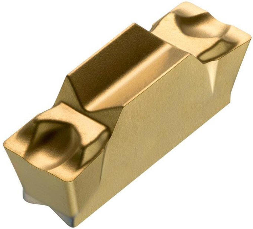 Doppelseitige Ein-und Abstech Wendeschneidplatte · 16.4mm lang mit einer 5mm Schnittbreite und einem 0.4mm Eckenradius · eine Genauigkeit nach Toleranzklasse M und einem Spanbrecher CM · Substrat T8330 PVD beschichtetes Feinstkorn WC-Co Hartmetall im ISO-Substrats-Bereich P25-P40 und K20-K40 zur Bearbeitung von Stahl und Guss in Kombination mit DORMER PRAMET GF..(RL) 05 und XLCCN 0516 Ein-und Abstechwerkzeugen