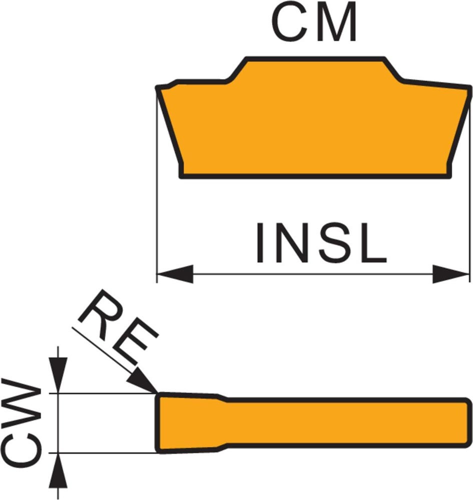 Einseitige Ein-und Abstech Wendeschneidplatte · 16.4mm lang mit einer 3mm Schnittbreite und einem 0.2mm Eckenradius · eine Genauigkeit nach Toleranzklasse M und einem Spanbrecher CM · Substrat T8330 PVD beschichtetes Feinstkorn WC-Co Hartmetall im ISO-Substrats-Bereich P25-P40 und K20-K40 zur Bearbeitung von Stahl und Guss in Kombination mit DORMER PRAMET GF..(RL) 03 · GG..(RL) 03 und XLCCN 0316 Ein-und Abstechwerkzeugen