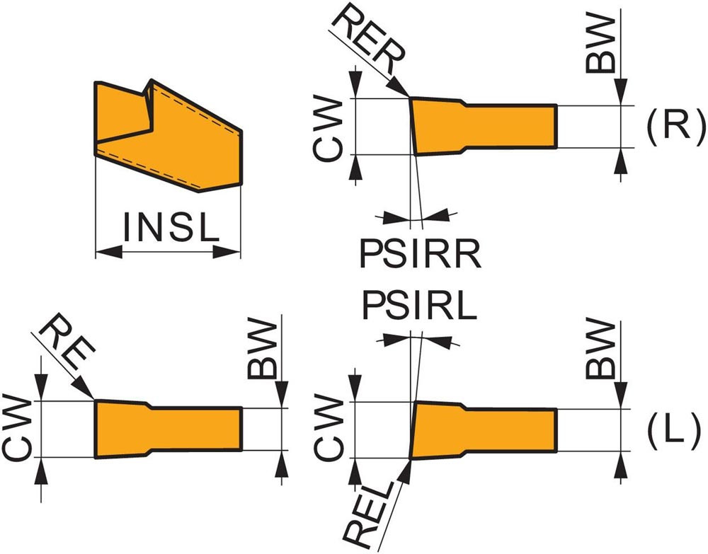 Einseitige Ein-und Abstech Wendeschneidplatte · mit einer 3mm Schnittbreite und einem 0.2mm Eckenradius · 5° Schneidenwinkel zur Reduktion von Druck und Grat auf der rechten Seite · eine Genauigkeit nach Toleranzklasse U und einem facettierter Schneidkante · Substrat T8330 PVD beschichtetes Feinstkorn WC-Co Hartmetall im ISO-Substrats-Bereich P25-P40 und K20-K40 zur Bearbeitung von Stahl und Guss in Kombination mit DORMER PRAMET XLCFN 03 und XLCF(RL) 03 Ein-und Abstechwerkzeugen