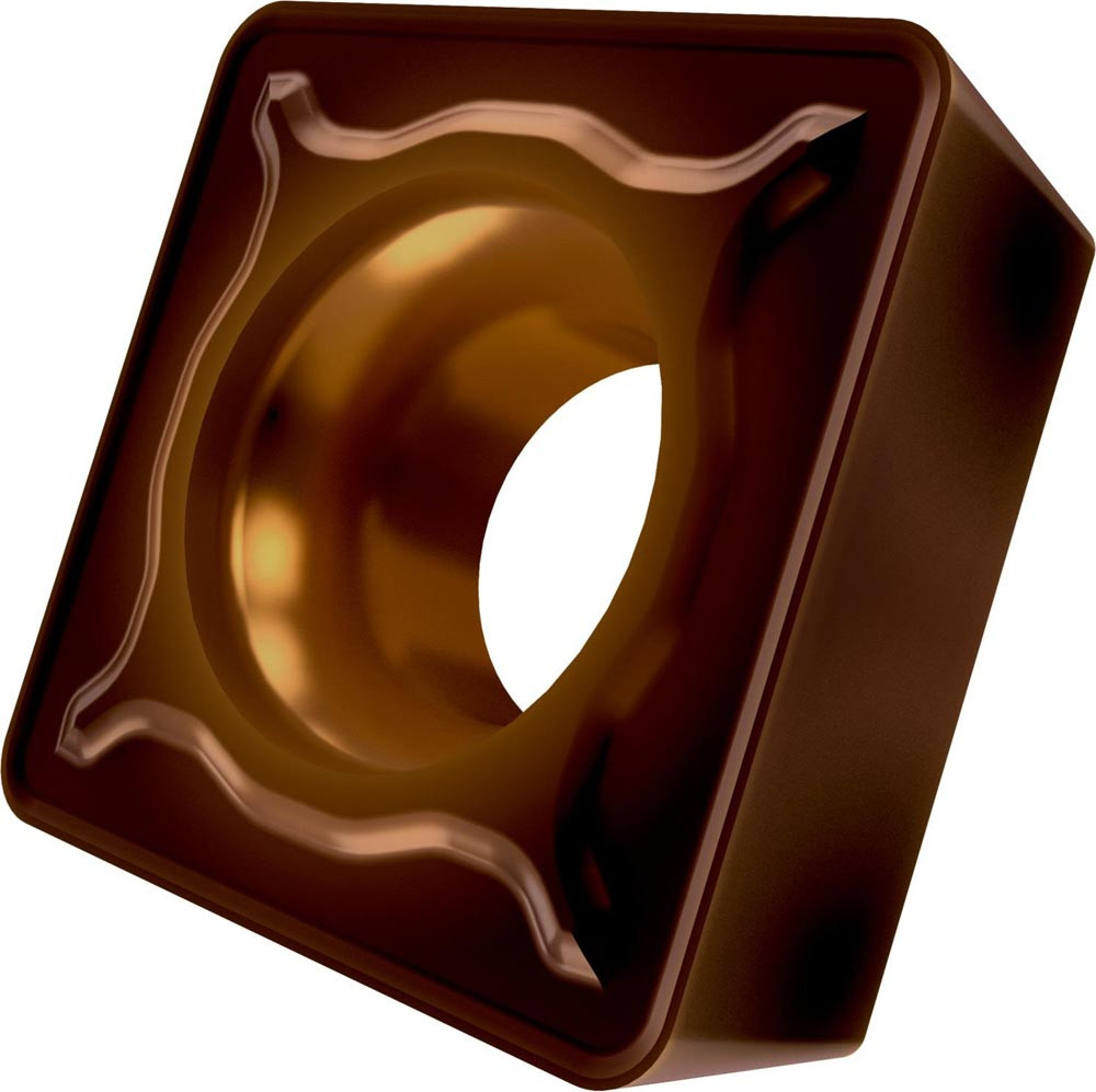 Einseitige positive Drehwendeschneidplatte · Viereckig mit 7° Freiwinkel · Innenkreisdurchmesser von 9.525mm · 3.97mm Dick · 0.8mm Radius · Indexgenauigkeit nach ISO-Toleranzklasse-M · Spanbrecher FM2 mit verrundeter Schneidkante · im Substrat T8430 · PVD beschichtet WC-Co Feinkornsubstrat im ISO-Bereich P20 -P40 · zum schlichten bis medium bearbeiten von Stählen