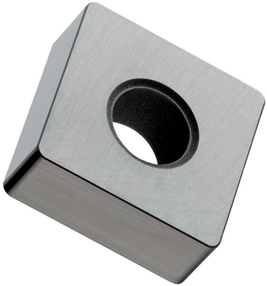 Doppelseitige Dreh-Wendeschneidplatte · Viereckig mit Spannbohrung · Innenkreisdurchmesser 12.7mm · 4.76mm Dick · 0.8mm Schneidenradius · Wiederholgenauigkeit nach ISO-Toleranzklasse G · facettierter Schneidkante T-land -25°/0.1mm · im Substrat TC100 · unbeschichtetes Keramik im ISO-Bereich K01-K15 · zur Hochvorschub Bearbeitung von Guss
