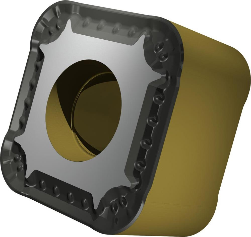 Spezialausführung negative Drehwendeschneidplatte · Viereckig mit Innenkreisdurchmesser von 19.05mm · 11mm Dick · 4mm Radius · Indexgenauigkeit nach ISO-Toleranzklasse-M · Spanbrecher TF mit verrundeter und facettierter Schneidkante · im Substrat T9415 · MT-CVD beschichtet WC-Co Substrat im ISO-Bereich P05 -P30 · zum schruppen bis medium bearbeiten von Stählen
