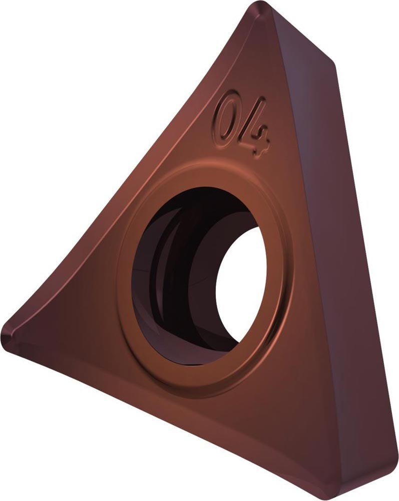 Einseitige positive Drehwendeschneidplatte · Triangular mit 7° Freiwinkel · Innenkreisdurchmesser von 6.35mm · 2.38mm Dick · 0.4mm Radius · Indexgenauigkeit nach ISO-Toleranzklasse-G · Spanbrecher SF3 mit verrundeter Schneidkante · im Substrat T8415.
