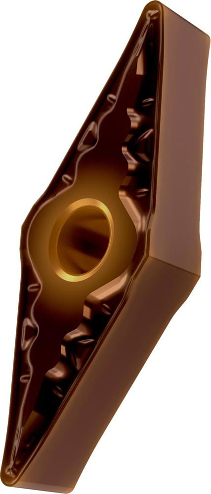 Doppelseitige negative Drehwendeschneidplatte · 35° Rhombisch mit Innenkreisdurchmesser von 9.525mm · 4.76mm Dick · 0.8mm Radius · Indexgenauigkeit nach ISO-Toleranzklasse-M · Spanbrecher FM mit verrundeter Schneidkante · im Substrat T8430 · PVD beschichtet WC-Co Feinkornsubstrat im ISO-Bereich P20 -P40 · zum schlichten bis medium bearbeiten von Stählen