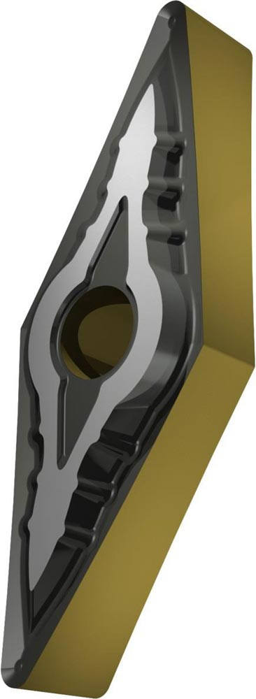 Doppelseitige negative Drehwendeschneidplatte · 35° Rhombisch mit Innenkreisdurchmesser von 9.525mm · 4.76mm Dick · 0.8mm Radius · Indexgenauigkeit nach ISO-Toleranzklasse-M · Spanbrecher SF mit verrundeter Schneidkante · im Substrat T9415 · MT-CVD beschichtet WC-Co Substrat im ISO-Bereich P05 -P30 · zum schlichten bis medium bearbeiten von Stählen