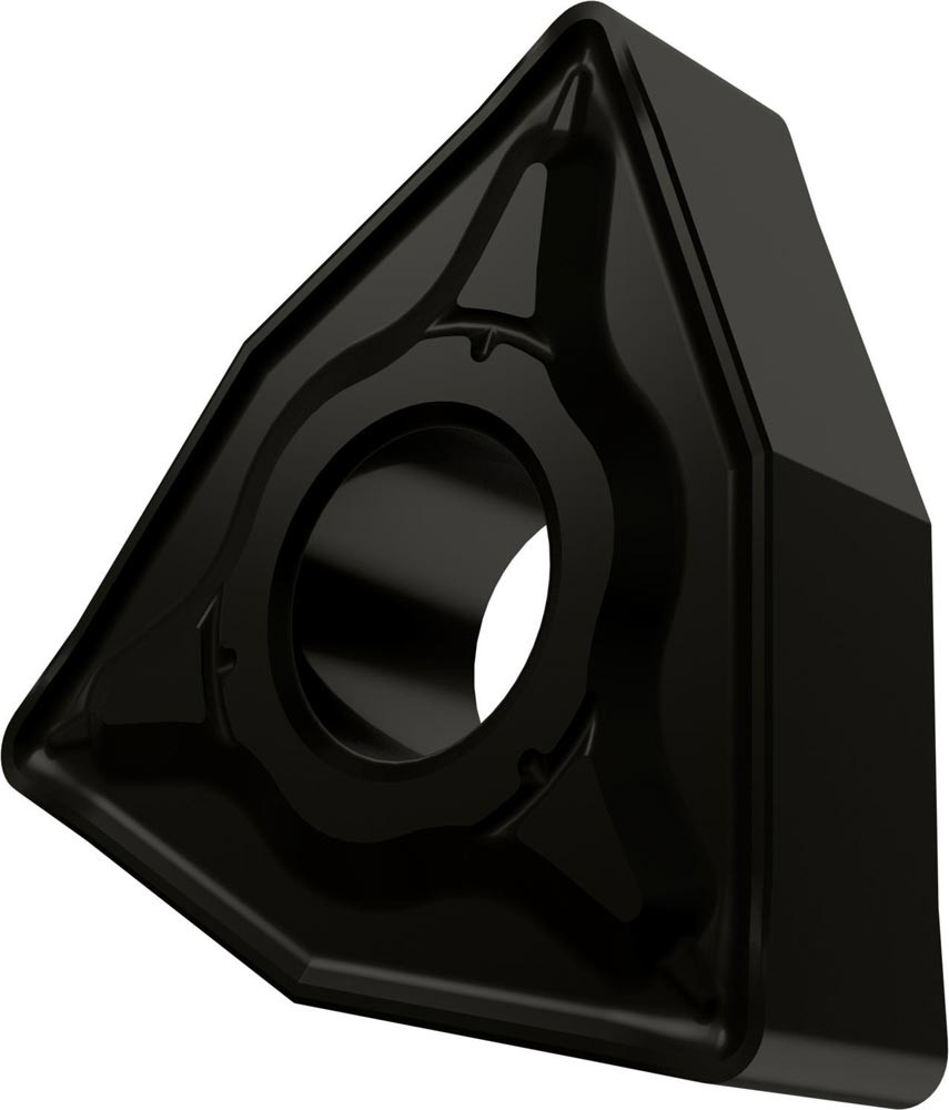 Doppelseitige negative Drehwendeschneidplatte · 80° Trigon mit Innenkreisdurchmesser von 12.7mm · 4.76mm Dick · 0.8mm Radius und Indexgenauigkeit nach ISO-Toleranzklasse-M · Spanbrecher NRM · im Substrat T7335 · MT-CVD beschichtet functionally graded WC-Co carbide in den ISO-Bereichen M20 -M40 und S15 -S25 · zum medium bis schruppen bearbeiten von nichtrostenden Stählen und Superlegierungen