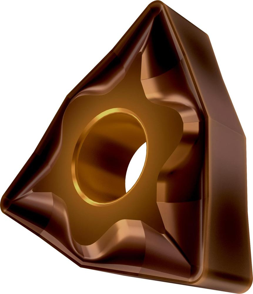 Doppelseitige negative Drehwendeschneidplatte · 80° Trigon mit Innenkreisdurchmesser von 12.7mm · 4.76mm Dick · 0.8mm Radius · Indexgenauigkeit nach ISO-Toleranzklasse-M · Spanbrecher NF mit verrundeter Schneidkante · im Substrat T8430 · PVD beschichtet WC-Co Feinkornsubstrat in den ISO-Bereichen P20 -P40 und M20 -M35 · zum schlichten bis medium bearbeiten von Stählen und nichtrostenden Stählen