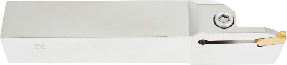 Einstechwerkzeug von oben geklemmt zum spannen einer 16.4mm langen doppelt oder einseitigen Wendeschneidplatte mit 5mm Schnittbreite (Bezeichnung LCM. 0516.. ) · linke Ausführung mit Wendeschneidplatte parallel zum Schaft für einen maximalen Stechdurchmesser von 50mm · Schafthöhe 32mm · Breite 25mm und Werkzeuglänge 170mm zum Mehrweg Kopierdrehen · flaches und tiefes radiales Einstechen · radiales Stechdrehen · Abstechen und Rohr-Abstechen