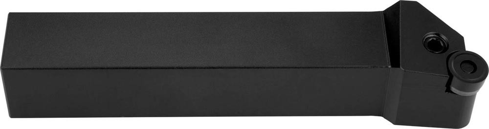 Dreh-Trägerwerkzeug mit Kniehebelklemmung zum spannen von Rund negative Wendeschneidplatten mit einem Durchmesser von 12.7mm · 4.76mm Dick (ISO Bezeichnung RN.. 120400 ) · linke Ausführung zum Stirndrehen mit abgesetzem Schaft · 25mm Werkzeughöhe x 25mm Breite x 150mm Länge für Kegeldrehen · Stirndrehen ohne Schulter und Längsdrehen ohne Schulter