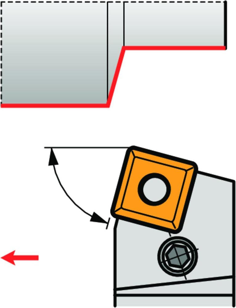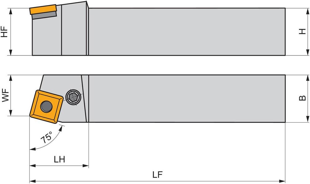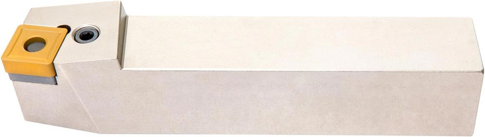 Dreh-Trägerwerkzeug mit Kniehebelklemmung zum spannen von Viereckig negative Wendeschneidplatten mit einem Innenkreisdurchmesser von 25.4mm · 9.52mm Dick (ISO Bezeichnung SN.. 2509.. ) · rechte Ausführung zum 75° Stirndrehen mit Zylinderschaft · 50mm Werkzeughöhe x 50mm Breite x 300mm Länge für Kegeldrehen und Längsdrehen ohne Schulter
