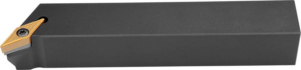 Dreh-Trägerwerkzeug mit Schraubklemmung zum spannen von 35° Rhombus positive Wendeschneidplatten mit einem Innenkreisdurchmesser von 9.525mm · 4.76mm Dick (ISO Bezeichnung VB.. 1604.. oder VC.. 1604.. ) · rechte Ausführung zum 62.5° · linkes und rechtesStirndrehen · 32mm Werkzeughöhe x 25mm Breite x 170mm Länge für Kegeldrehen · Kopierdrehen in einer und mehreren Richtungen und Längsdrehen mit und ohne Schulter