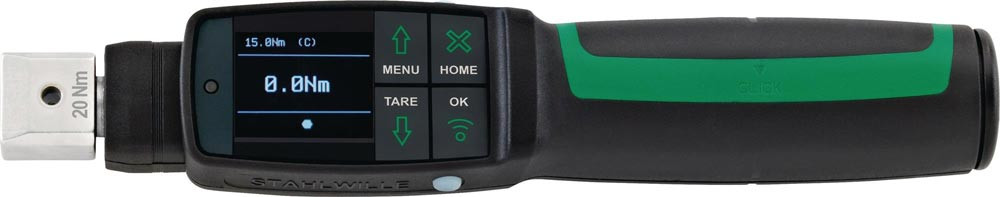 mit Aufnahme für Einsteckwerkzeuge · elektromechanisch · anzeigend und auslösend · 4 Messmodi: Drehmoment, Drehwinkel, Drehmoment mit Kontrollgröße Drehwinkel, Drehwinkel mit Kontrollgröße Drehmoment · Nm, ft·lb, in·lb als Maßeinheiten · für den kontrollierten Rechts- und Linksanzug · Drehmoment und Drehwinkel gleichzeitig sichtbar · Art.-Nr. 6480932, 6481751 und 6480706 Messung unabhängig vom Kraftangriffspunkt · mit QuickRelease-Sicherheitsverriegelung · nach Entlastung sofort wieder funktionsbereit · einstellbar über Tastatur · großes, hochauflösendes, farbiges Grafik-Display · seitliche Signalleuchten · dokumentationsfähig mit der Software SensoMaster – bis zu 200 Schraubfälle in max. 25 Ablaufplänen mit verschiedenen Toleranzgrenzen programmierbar – Datenspeicherung bis 2.500 Schraubvorgänge inkl. Datum & Zeitstempel · ergonomischer 2-Komponenten-Griff (resistent gegen Öle, Fette, Kraftstoffe, Bremsflüssigkeiten und Skydrol) · automatische Kalibrierung mit der perfectControl® Kalibrier- und Justiereinrichtung · Genauigkeit Drehwinkel: Anzeigeabweichung: ±1° ±1 Digit bis 100°, >100° mindestens 1% ± 1 Digit, Anzeigeauflösung: 0,1°,