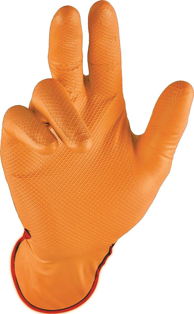 nach EN 374 · Kat. III · AQL: 1,5 · Material: Nitril · puderfrei · Premium-Qualität · lebensmittelgeeignet · hervorragender Griff und Halt (trocken und nass) durch Diamantmuster · hohe Widerstandsfähigkeit · beidseitig tragbar · latexfrei · puderfrei