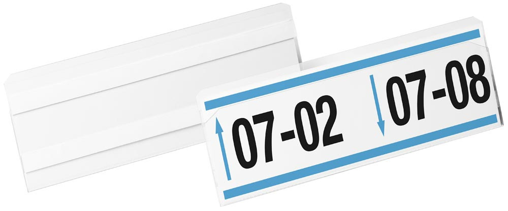 · Etiketten- / Kennzeichnungstasche aus transparenter PET Hartfolie ∙ Schneller Austausch der Einsteckschilder ∙ Scannertauglich und Dokumentenecht · VE 10 Stück