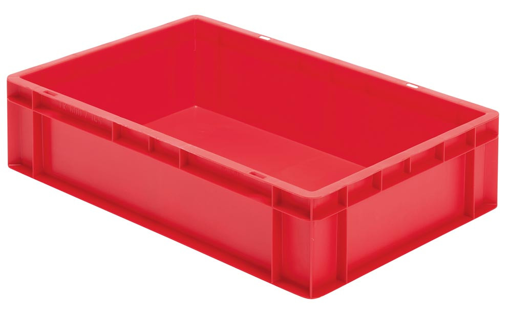 Euronormbehälter, PP, Boden + Wände geschlossen, Volumen 22 l, LxBxH 600x400x120 mm, Farbe rot, VE 2 Stück E860310