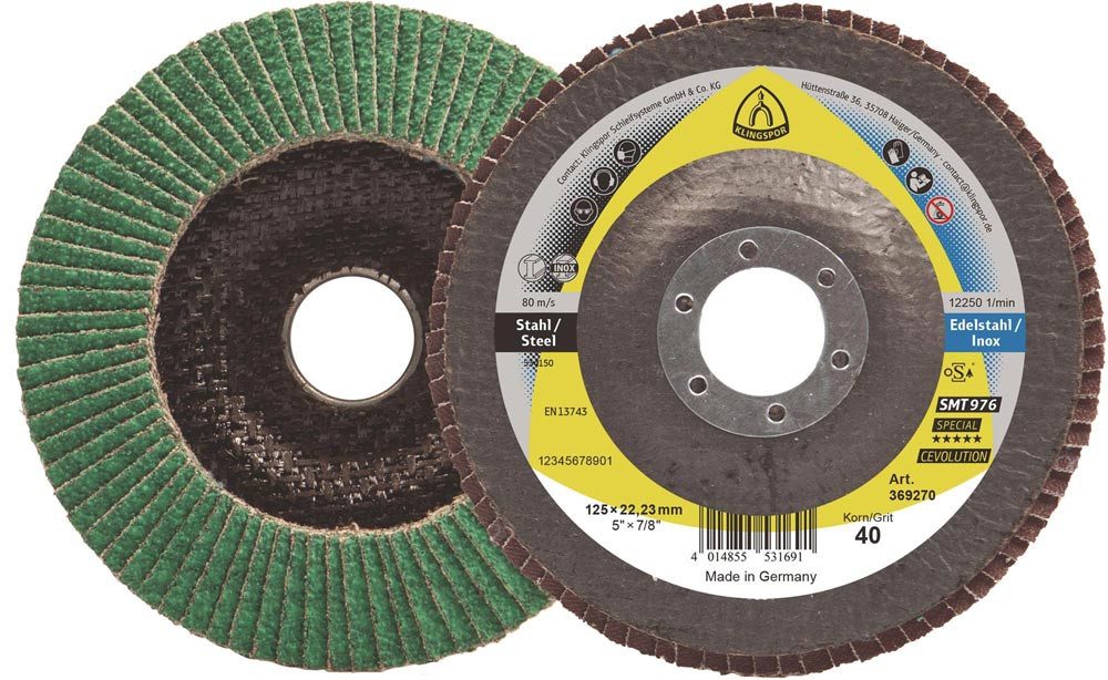 Fächerscheibe SMT 976 Ø 125 mm Körnung 40 mm gewölbt 6 Edelstahl keramischer Korund