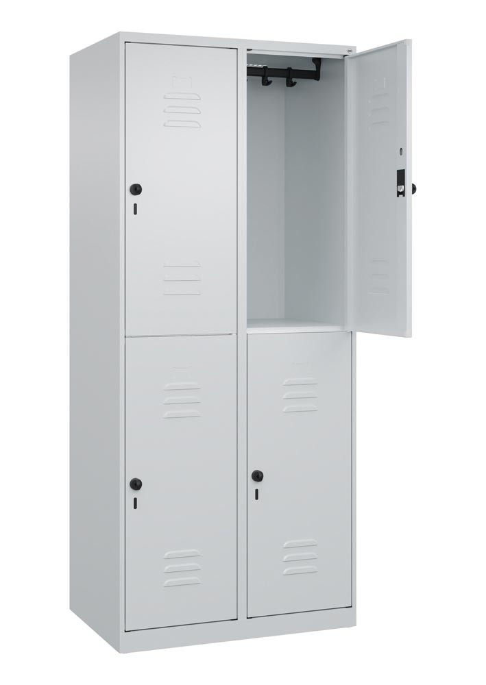 Fächerschrank, doppelstöckig, BxTxH 800x500x1850 mm, 2x2 Fächer, Abt.B 400 mm, Drehriegel, bodenstehend, RAL 7035