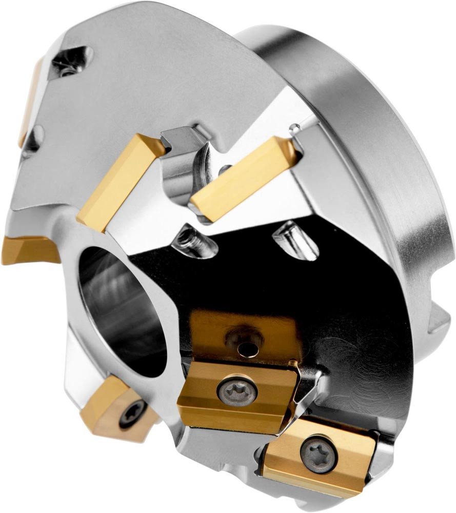 Entgratfräser mit doppelt negativer Geometrie zum spannen von 8 Stück XPHT 1604.. einseitigen Wendeschneidplatten · Schnittdurchmesser 45 bis maximal 95.1mm mit 30° Anstellwinkel und 27mm Verbindungsbohrung gemäß DIN 8030 · 50mm Überstandslänge · Kühlkanalbohrung und ungleiche Teilung zum Entgratfräsen mit einer maximalen Schnitttiefe von 14mm