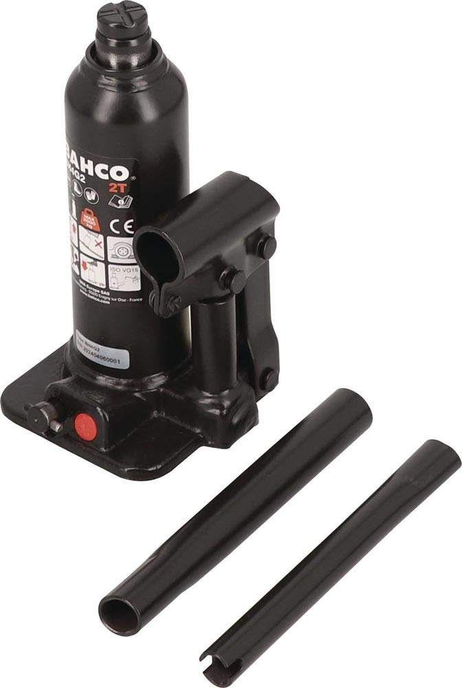 Verschraubte Flaschenwagenheber/Hitzebehandelte Verlängerungsschraube ermöglicht Einstellung einer geringen und maximalen Hubhöhe/Geriffelter, hitzebehandelter Sattel bietet breite Hubfläche und sicheren Halt/Einsatzbereich: -20 bis 70°C/Zertifiziert nach 2006/42/EC + BS EN1494
