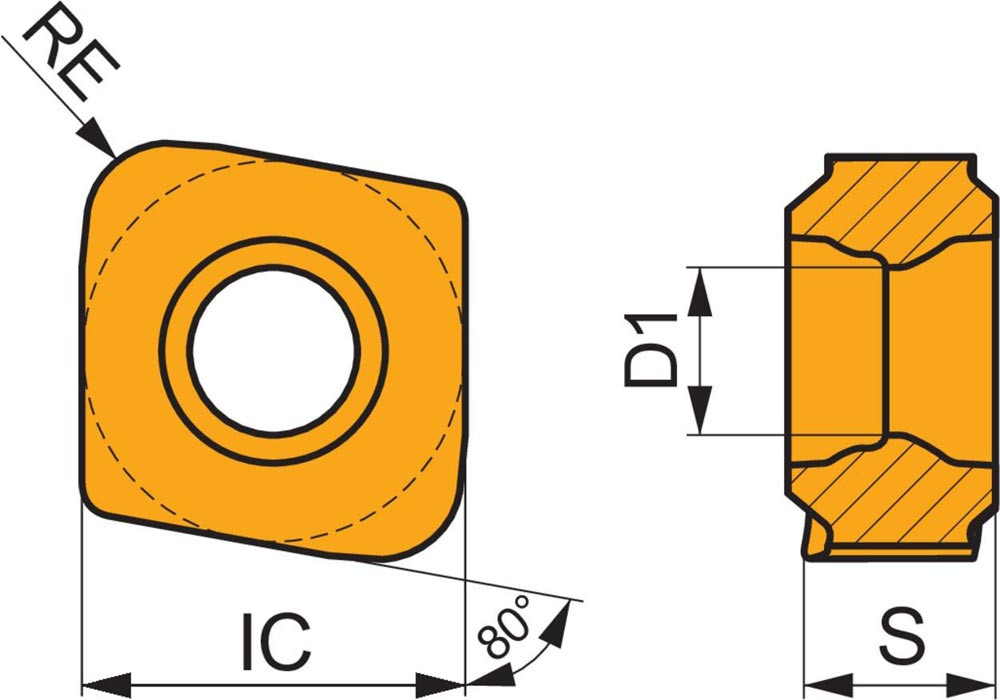 Doppelseitige Fräswendeschneidplatte CNHX 0502 · 80° Rhombisch und Wiperdesign für eine maximale Schnitttiefe von 1.0mm · mit 1.0mm Eckenradius · eine Indexierungsgenauigkeit gemäß ISO-Toleranzklasse-H und WM Geometrie mit verrundeter Schneidkante · M8330 PVD Beshcichtung WC-Co Feinkornsubstrat in den ISO-Gruppen P20 -P40 und K20 -K40 zum bearbeiten von Stahl und Gusseisen mit Kopierplanfräsern SCN05C