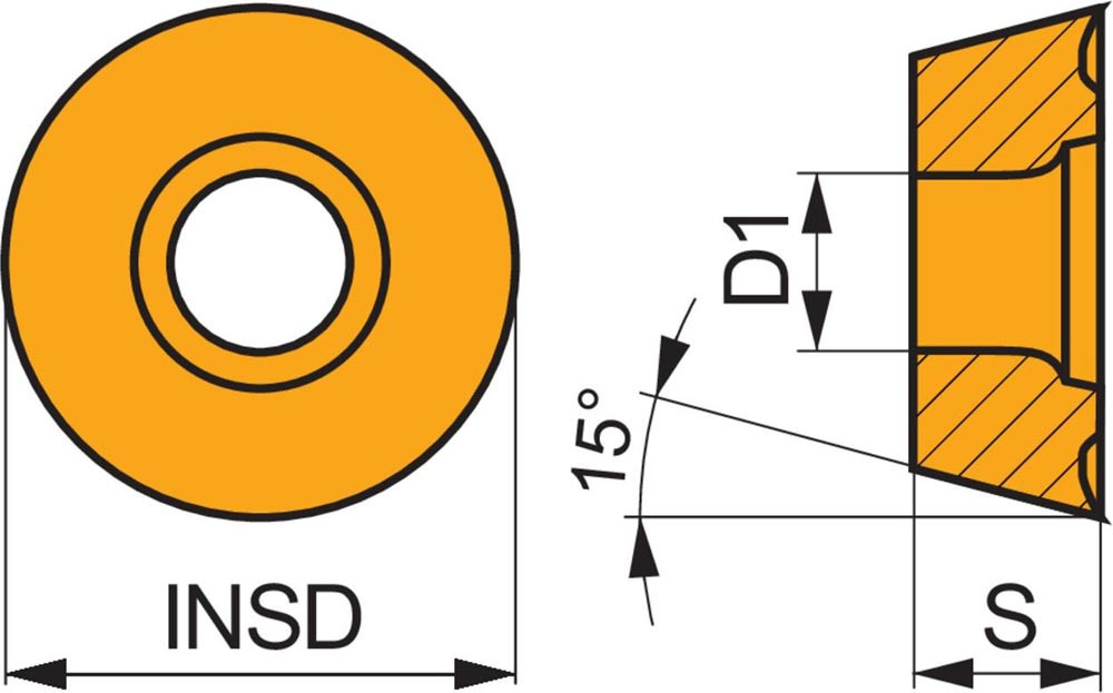 Fräswendeschneidplatte ISO RDET 1003MOSN:M8340 Bohrungs-D. 4,4mm PVD beschichtet Farbe Gold E6502538