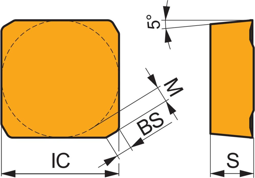 Einseitige Fräswendeschneidplatte SBMR 2207 mit Spanbrecher · Viereckig für eine maximale Schnitttiefe von 15.0mm · mit eine Indexierungsgenauigkeit gemäß ISO-Toleranzklasse-M mit verrundeter und facettierter Schneidkante · M8326 PVD Beschichtung WC-Co Substrat zum bearbeiten mit Planfräsern FSB22X