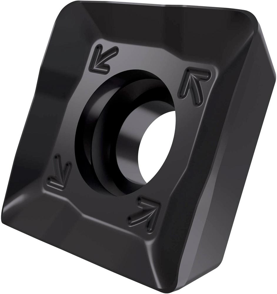 Einseitige Fräswendeschneidplatte SDMT 1205 mit Spanbrecher · Viereckig für eine maximale Schnitttiefe von 10.0mm · mit 0.8mm Eckenradius · eine Indexierungsgenauigkeit gemäß ISO-Toleranzklasse-M und M Geometrie mit verrundeter und facettierter Schneidkante · 8215 PVD Beschichtung WC-Co Feinkornsubstrat in der ISO-Gruppe P10 -P20 zum bearbeiten von Stahl mit Eckfräsern SSD12