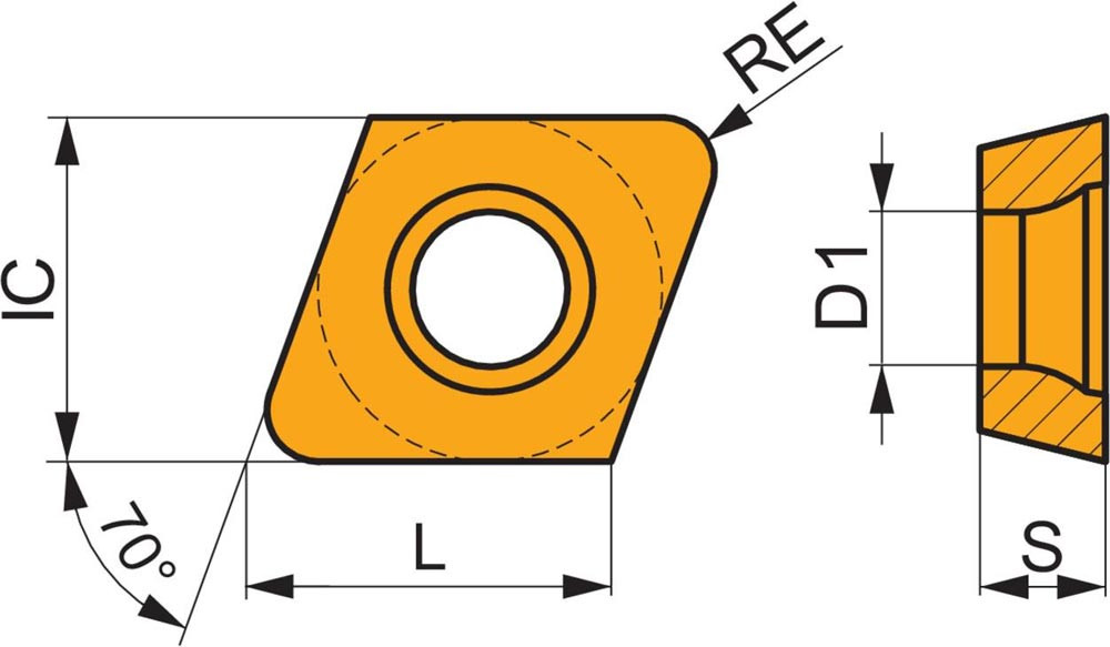 Einseitige Fräswendeschneidplatte XDHW 10T3 mit einem ebenen Spanwinkel · 70° Rhombisch für eine maximale Schnitttiefe von 1.0mm · mit 1.0mm Eckenradius · eine Indexierungsgenauigkeit gemäß ISO-Toleranzklasse-H mit verrundeter und facettierter Schneidkante · M8325 PVD Beschichtung WC-(Ti · Ta · Nb)C-Co Substrat