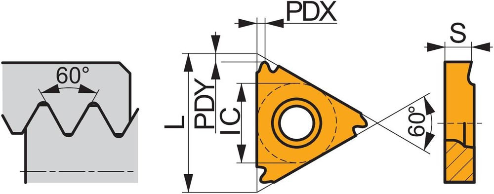 Gewindedreh-Wendeschneidplatte ISO TN 22ERN60:T8030 Innenkreis-D. 12,7mm PVD beschichtet Farbe Gold E6505576
