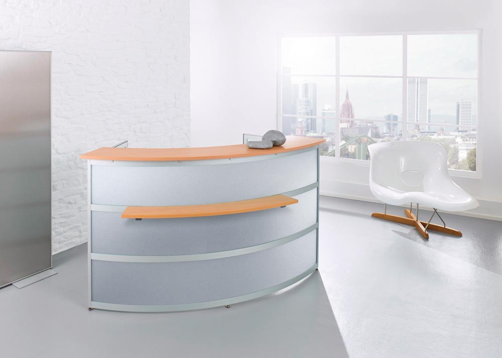 Grundtheke rund, MDF-Dekorsilber, Platte buche, BxTxH 2200x850x1100mm
