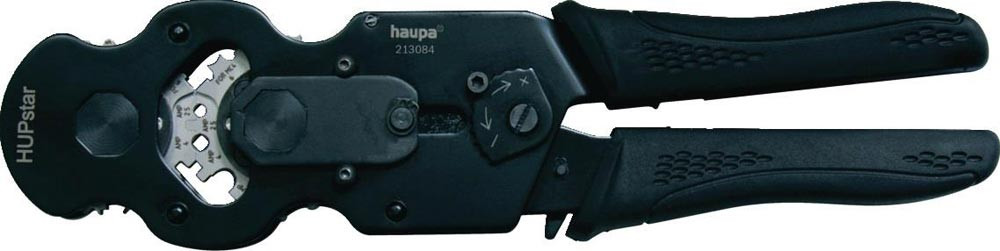 für Photovoltaik Verbinder · Crimpzange für den industriellen Anwender · drehbare Präzisionspressgesenke mit Parallelvorschub · Pressform: universal · Gesenke wechselbar · Press-Stern 213084/E